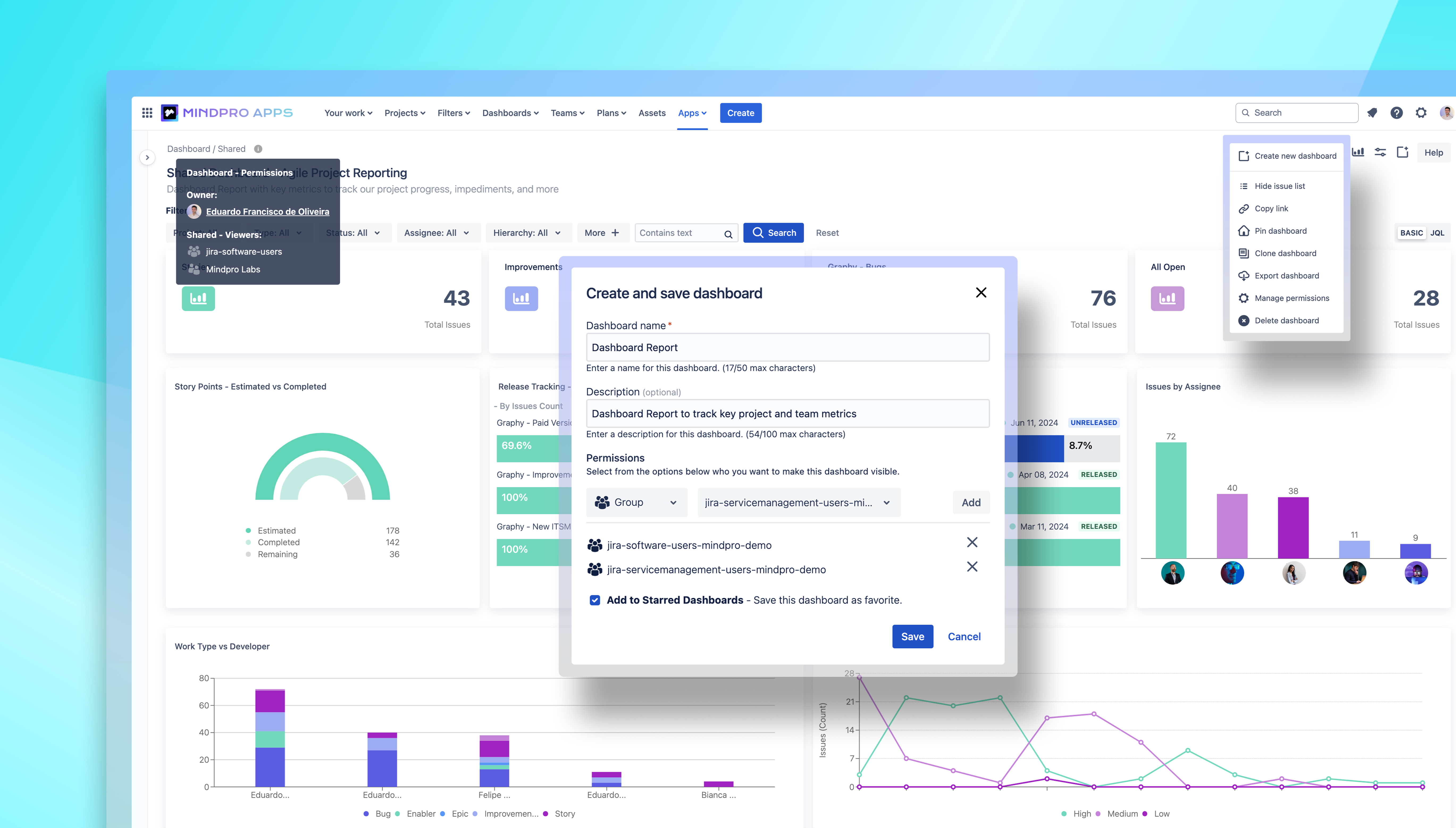 - Share - Share real-time dashboards (Jira users, JSM Portal)