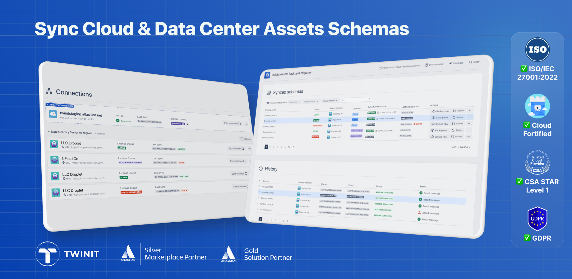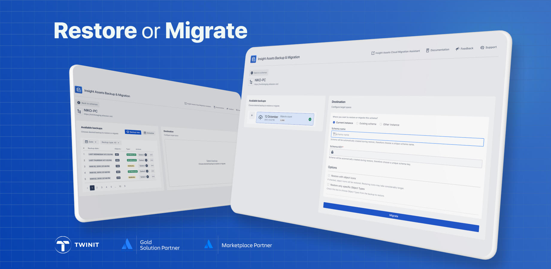 Protect schemas, objects, relationships, attachments, asset custom fields, and references inside work items. Set automated backups and perform granular restores. Migrate schemas with custom fields and move data across DC🔁Cloud, Cloud🔁Cloud.