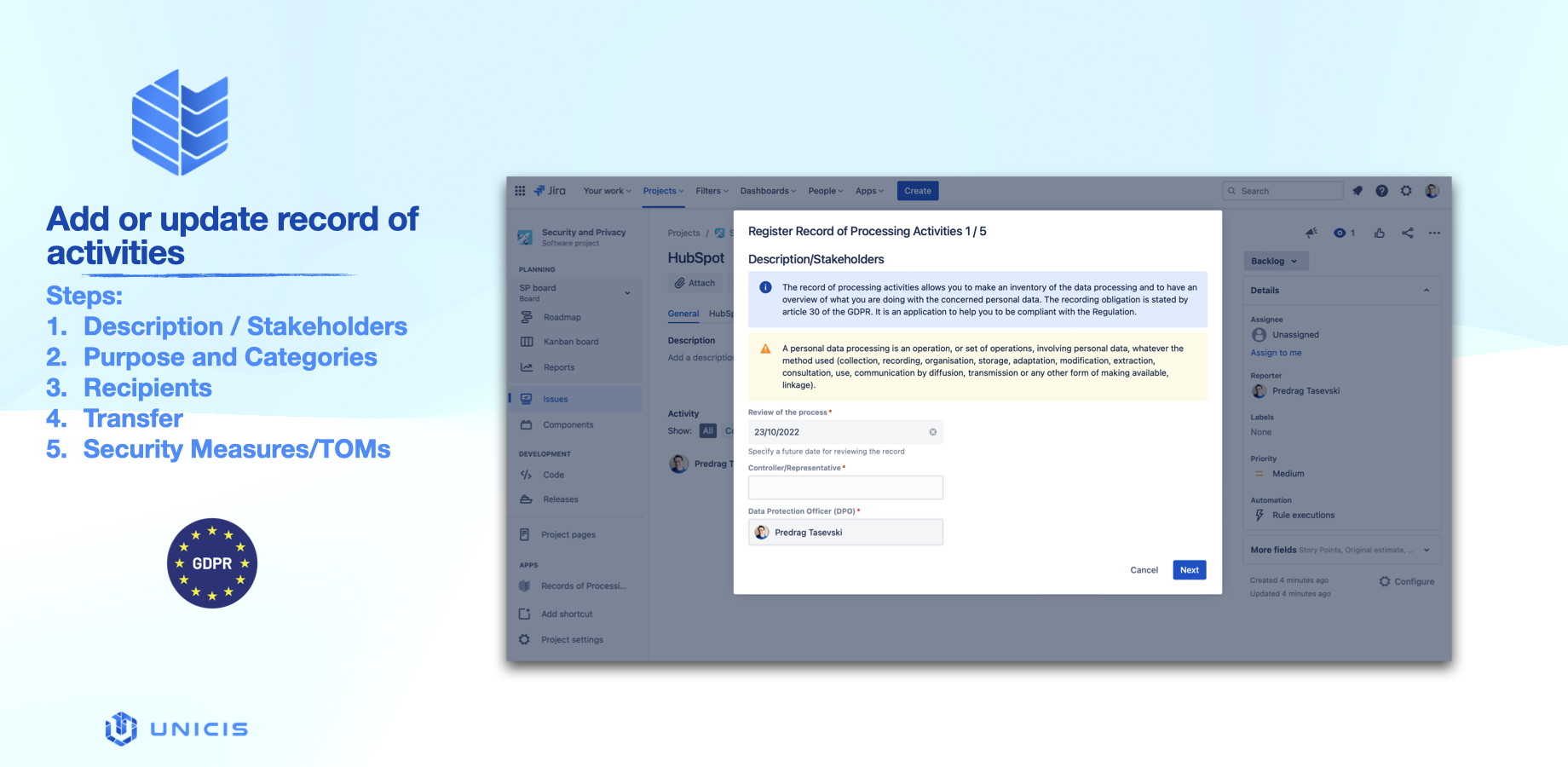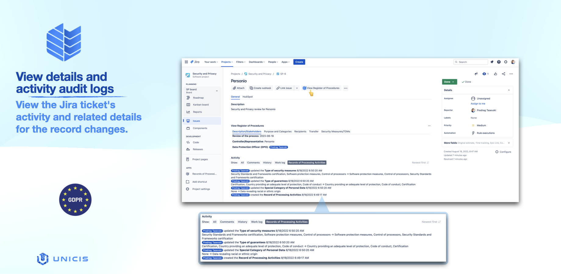 Unicis - Record Processing Activities (RPA) for Jira integrates with your Atlassian app