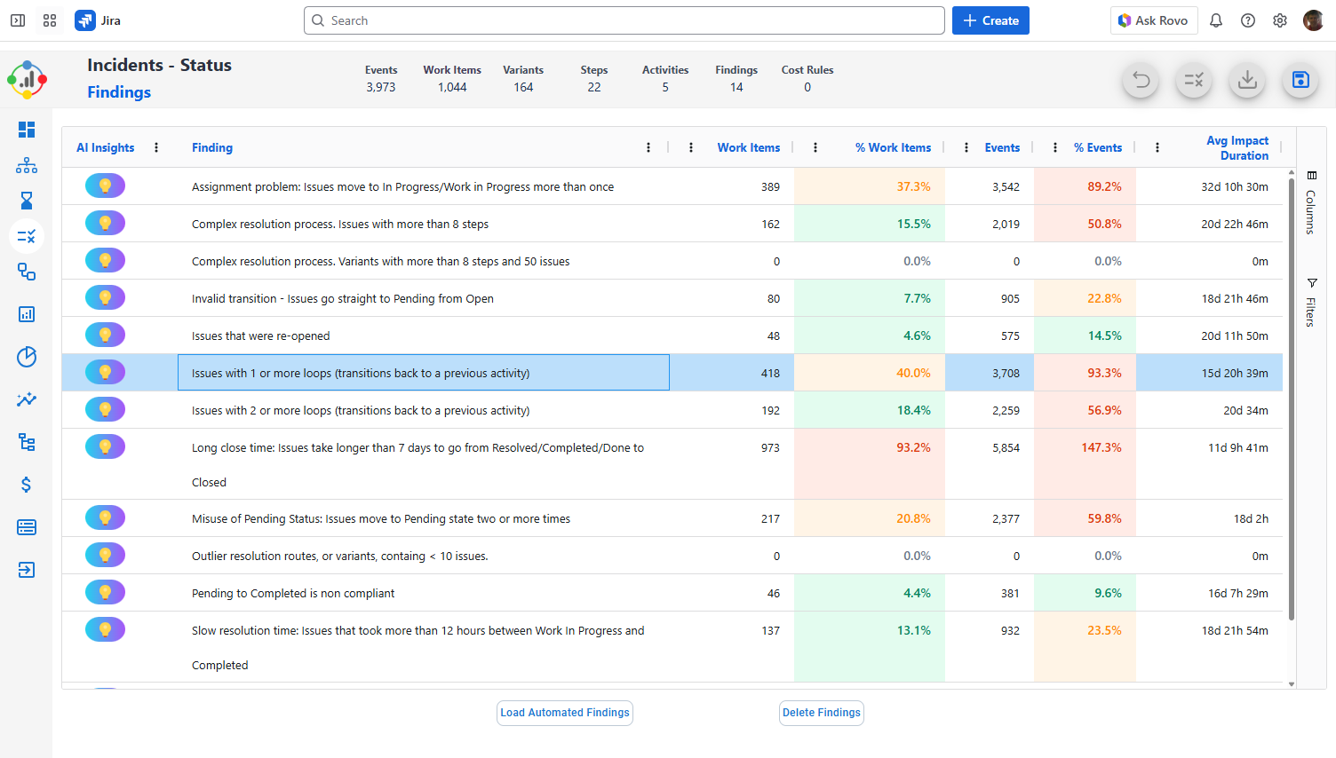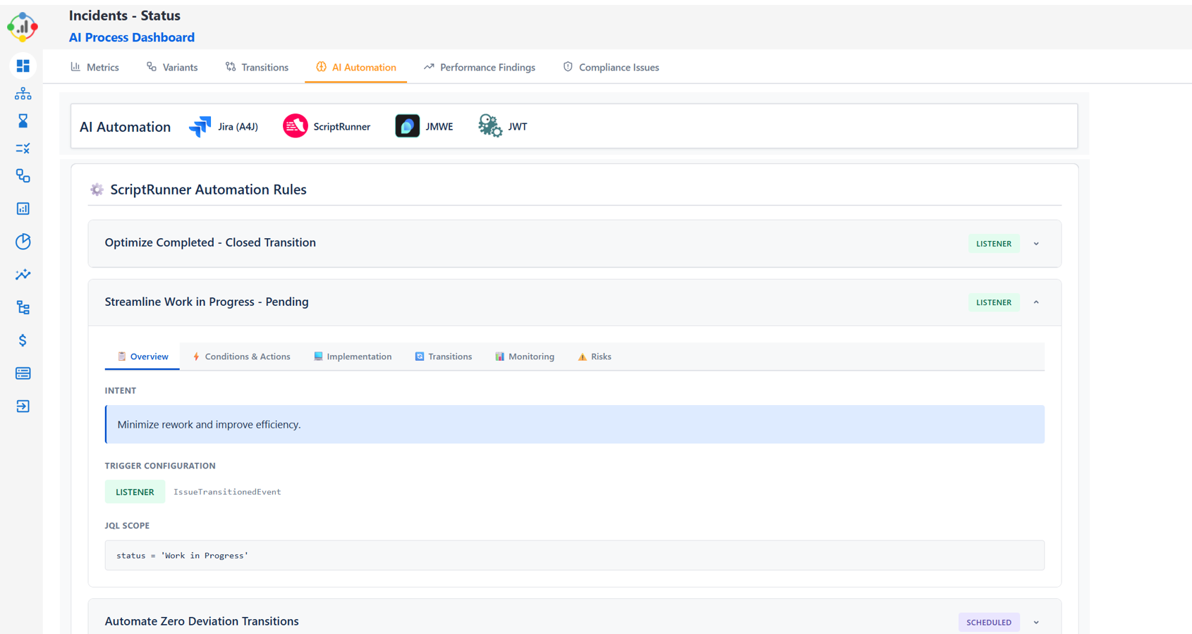 - AI Insights automatically generated to provide optimization recommendations, Jira configuration enhancements and automation rules