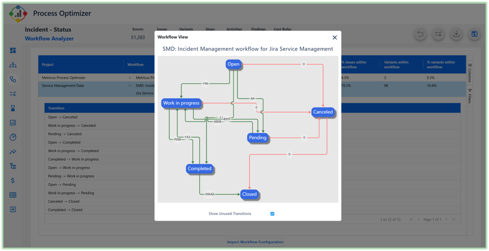 Determine what workflows are used for selected issue types, which workflow transitions are activated, and what the metrics are for workflow transitions (avg/min/max duration, std deviation, and many more)