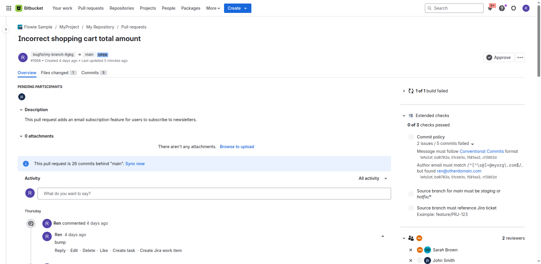 Highly configurable built-in merge checks, including pull request policy checks and commit policy checks - Jira pull request reference check