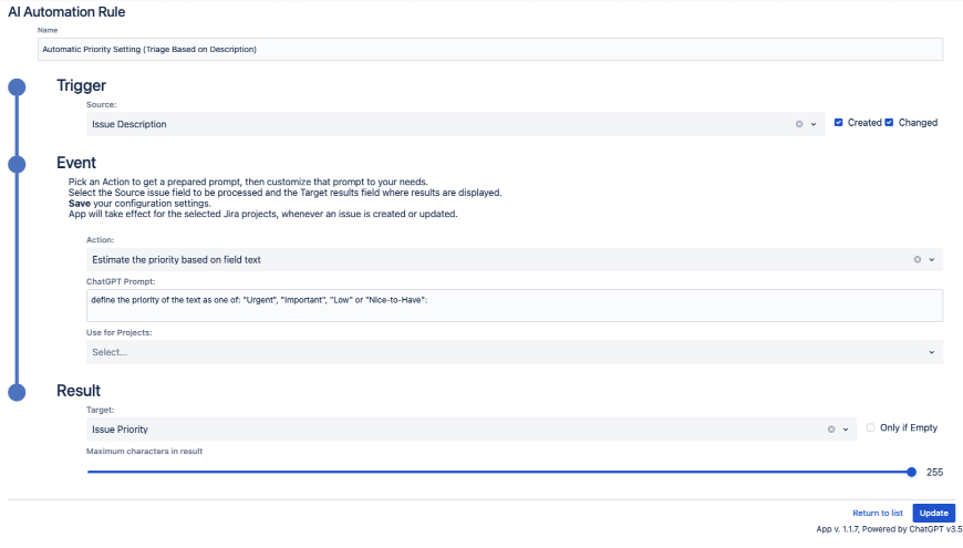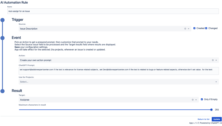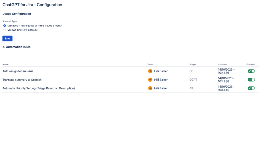 You're not limited to these examples; the app allows you to define your custom prompts for endless rule possibilities. Whether you choose to use a free managed account (up to 986 issues/month) or your ChatGPT organization account for limitless capabilities, ChatGPT for Jira adapts to meet your project's specific needs.