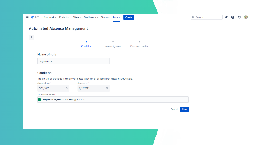 Automated Absence Management for Jira helps you to manage your work during your absence. It provides an ultimate features pack to handle your work during leave: