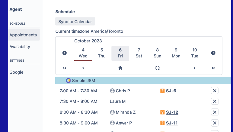 - Consult appointment times in the request portal, on the issue view, in the agent’s calendar as well as the Service Scheduler agent view within Jira