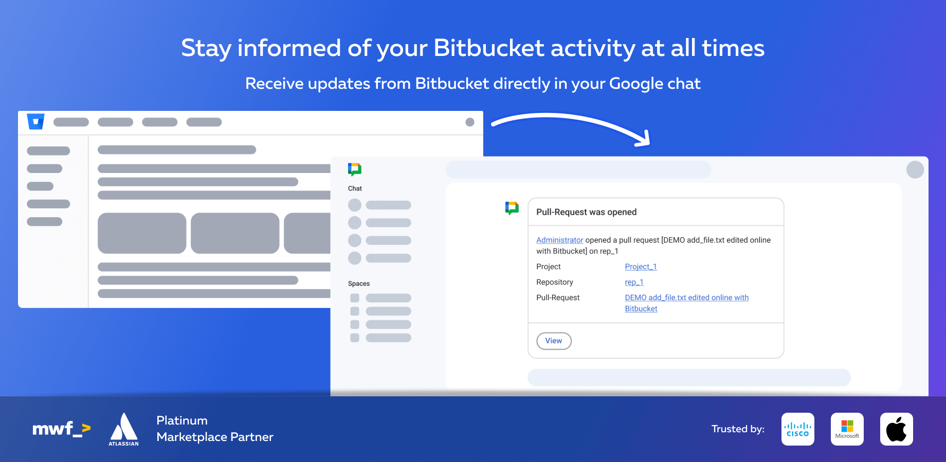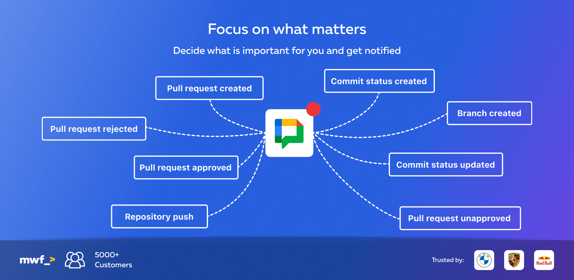 Unleash the full potential of your team's collaboration with Bitbucket and Google Chat integration, no more silos, no more missed updates, just seamless teamwork