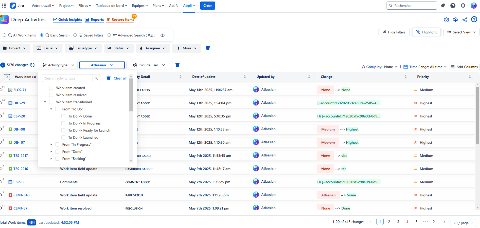 Key highlights of the app๐Deep Activity for Jira โ Complete change history with highlights, deleted issue recovery, and audit-ready reports