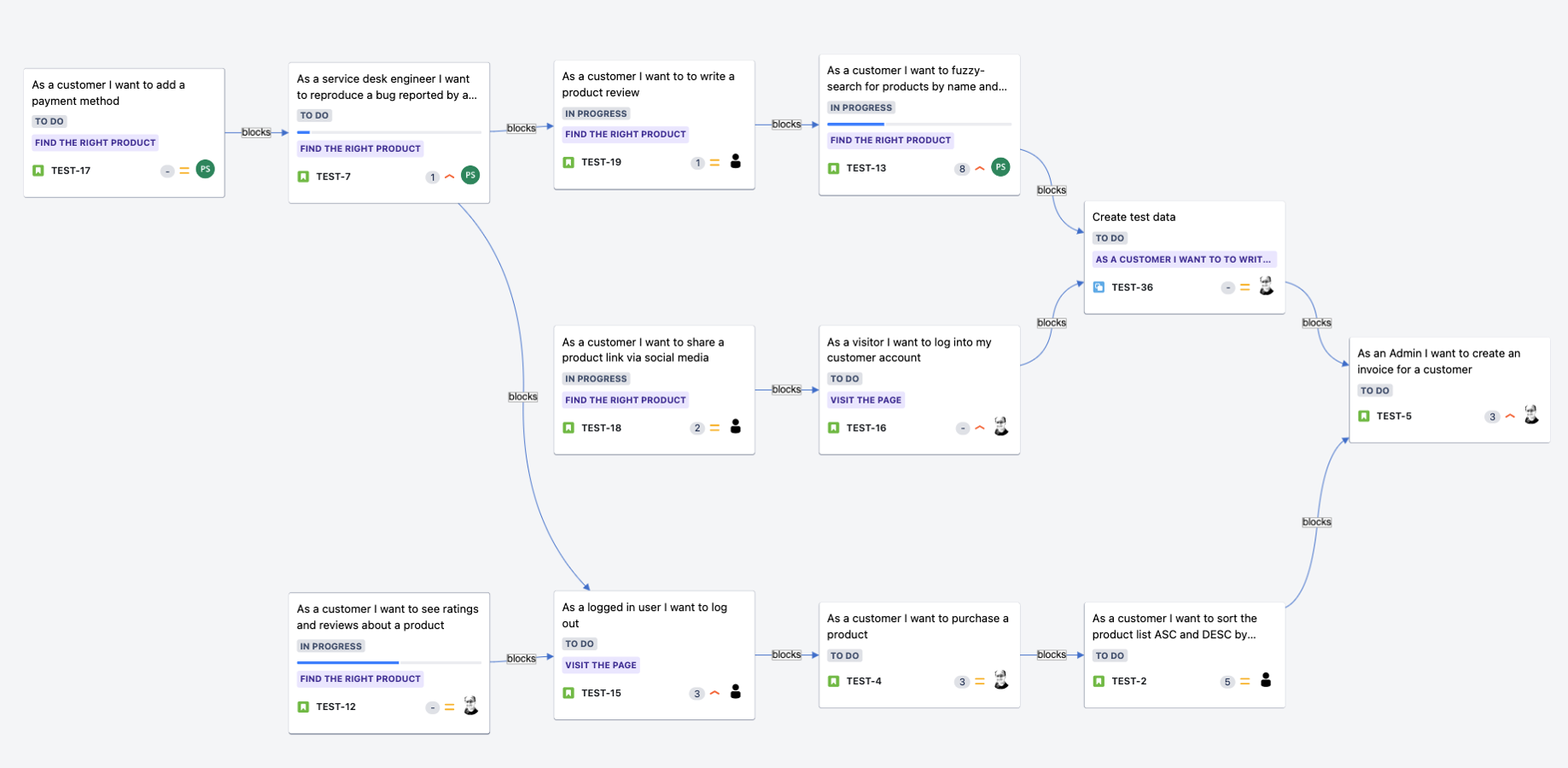Explore task dependencies in a zoomable graph to identify key issues, patterns, and cycles. Group and nest by epic, project, team, version, and status. Customize by choosing which additional link types to display.