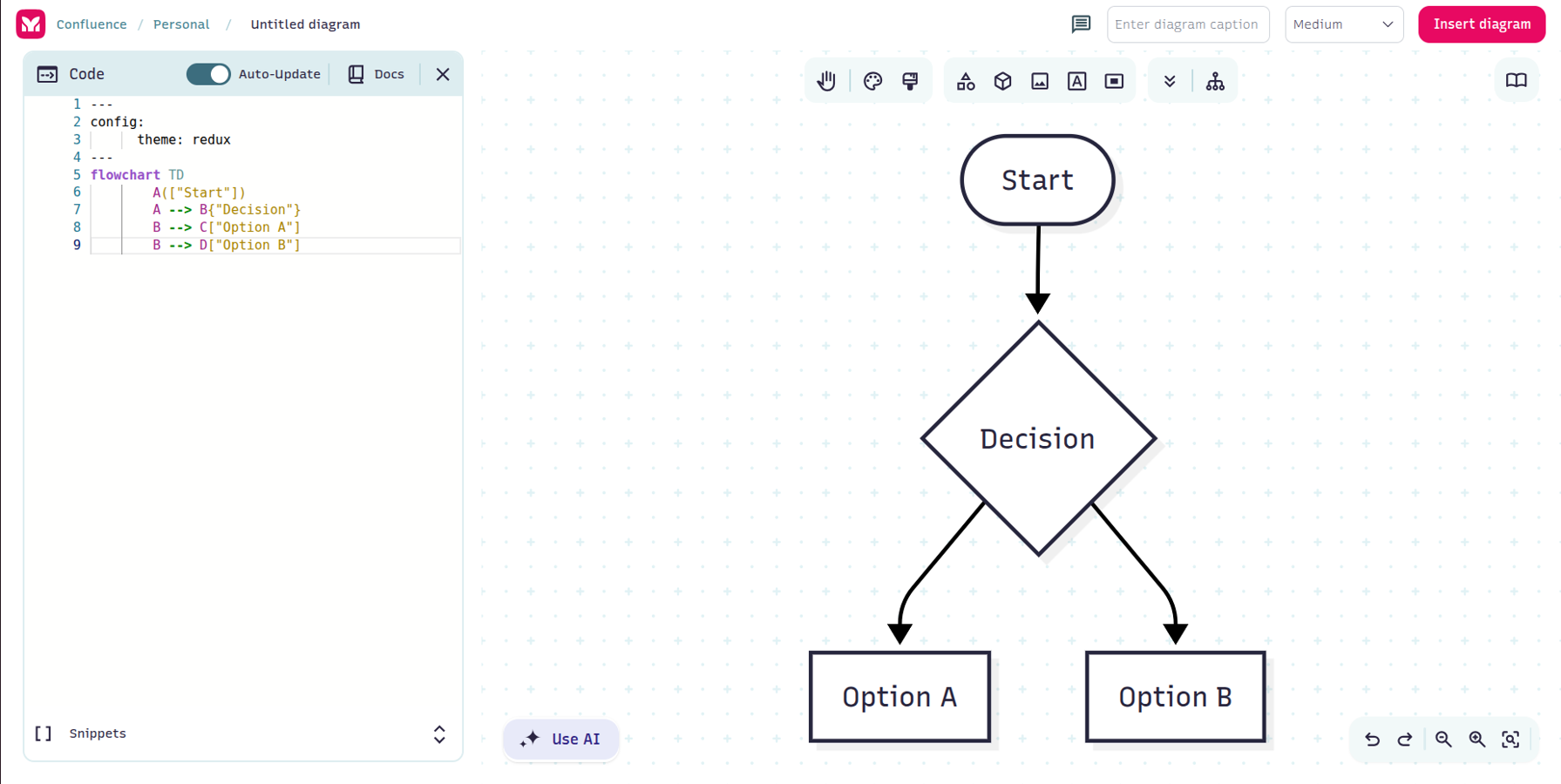 Your documentation deserves dynamic, collaborative diagrams. Edit directly in Confluence with Mermaid’s visual editor, syntax highlighting, inline error checks, AI-powered diagram generation, real-time collaboration