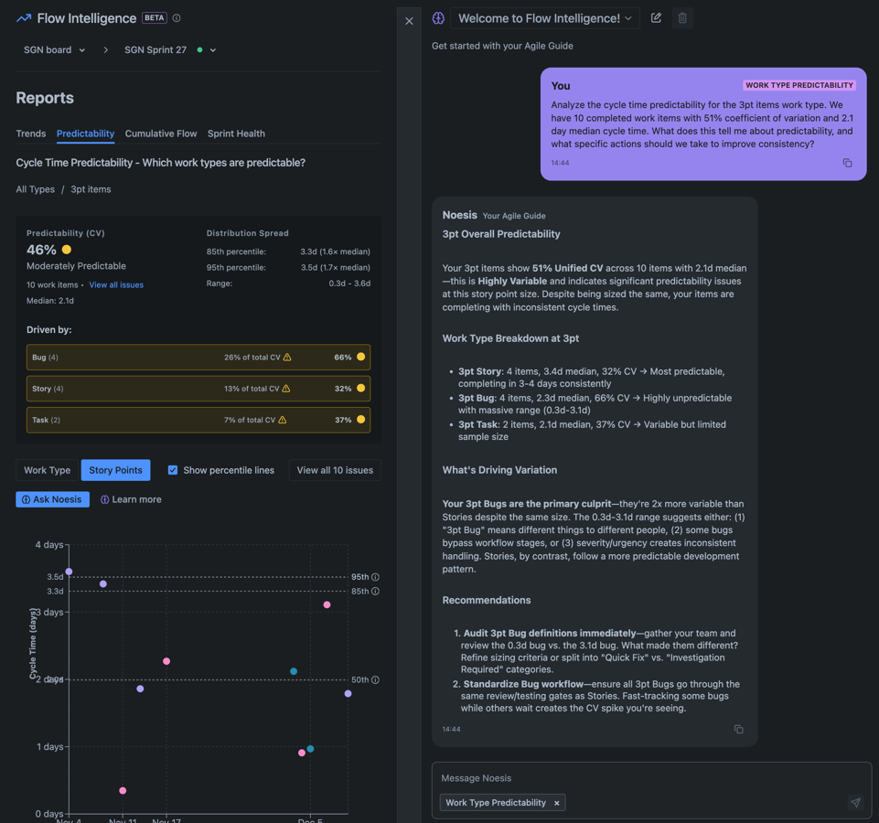 Close the gap between estimates and reality. Identify what's unpredictable, see where work gets stuck, and fix it.