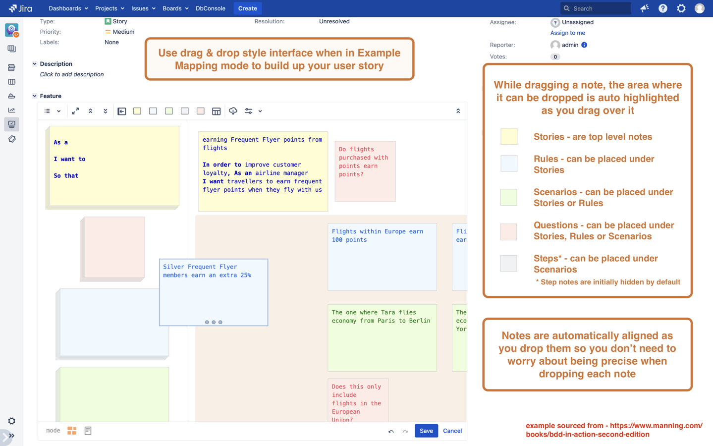 - Provides an Example Mapping tool that is suitable for distributed teams