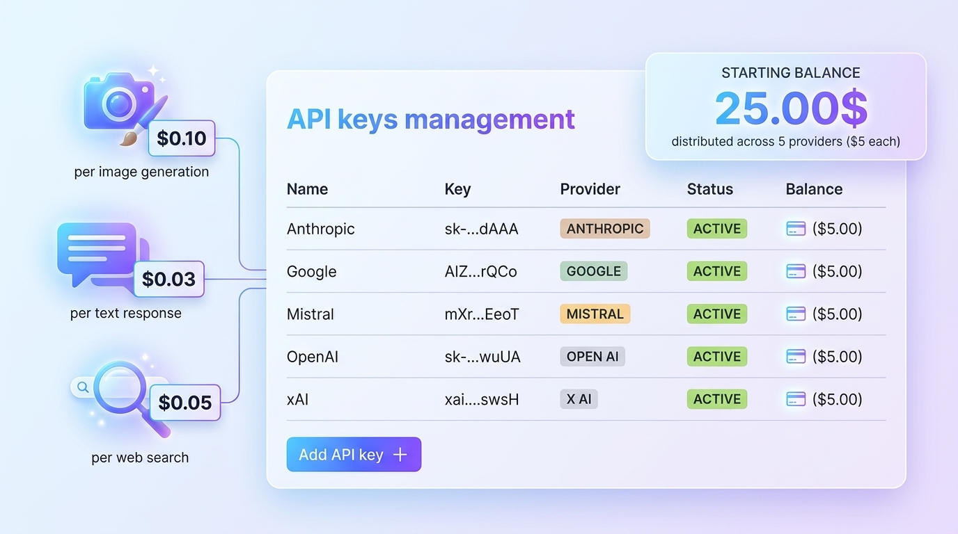 🤖 Multi-provider — OpenAI, Anthropic, Google, xAI, Mistral AI.
