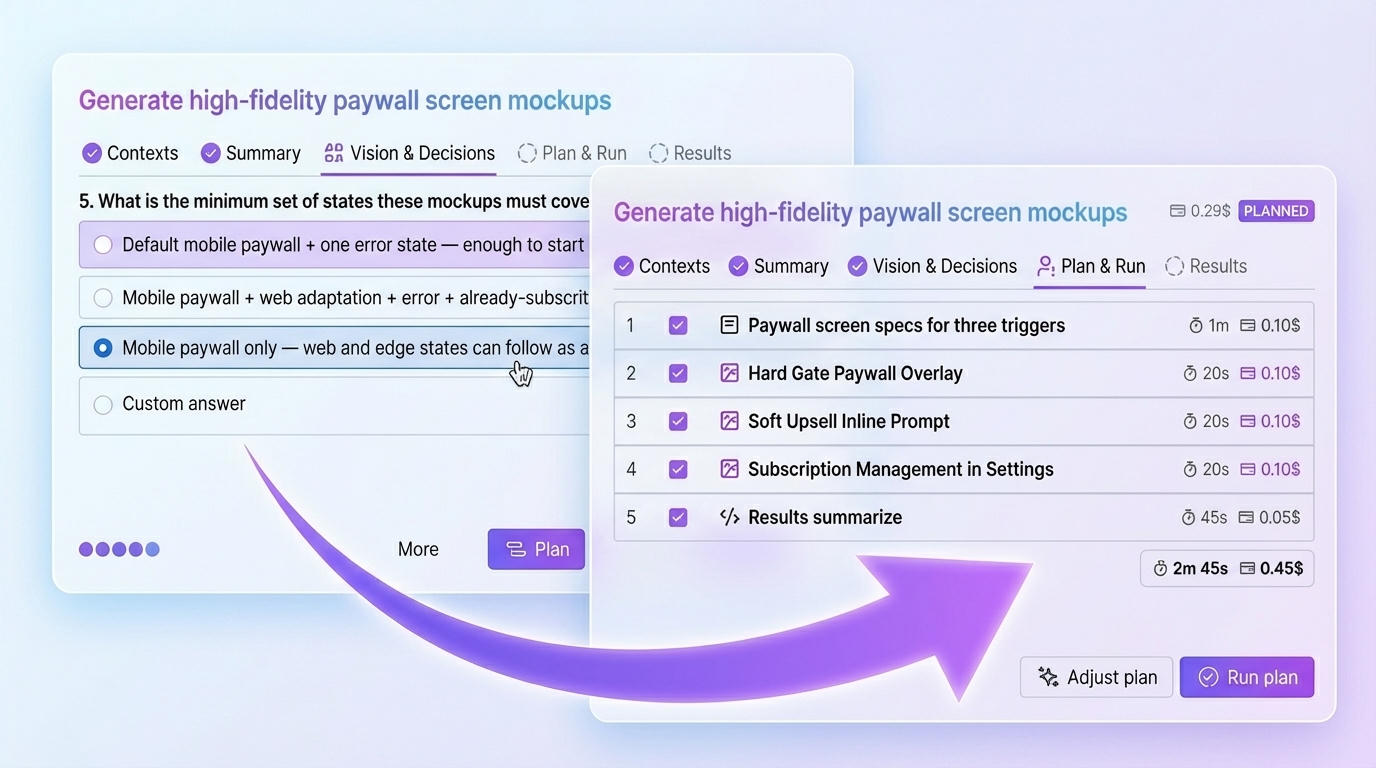 Describe your task — AI assistant for Jira asks clarifying questions, reduces ambiguity, and builds a plan you can run or adapt.