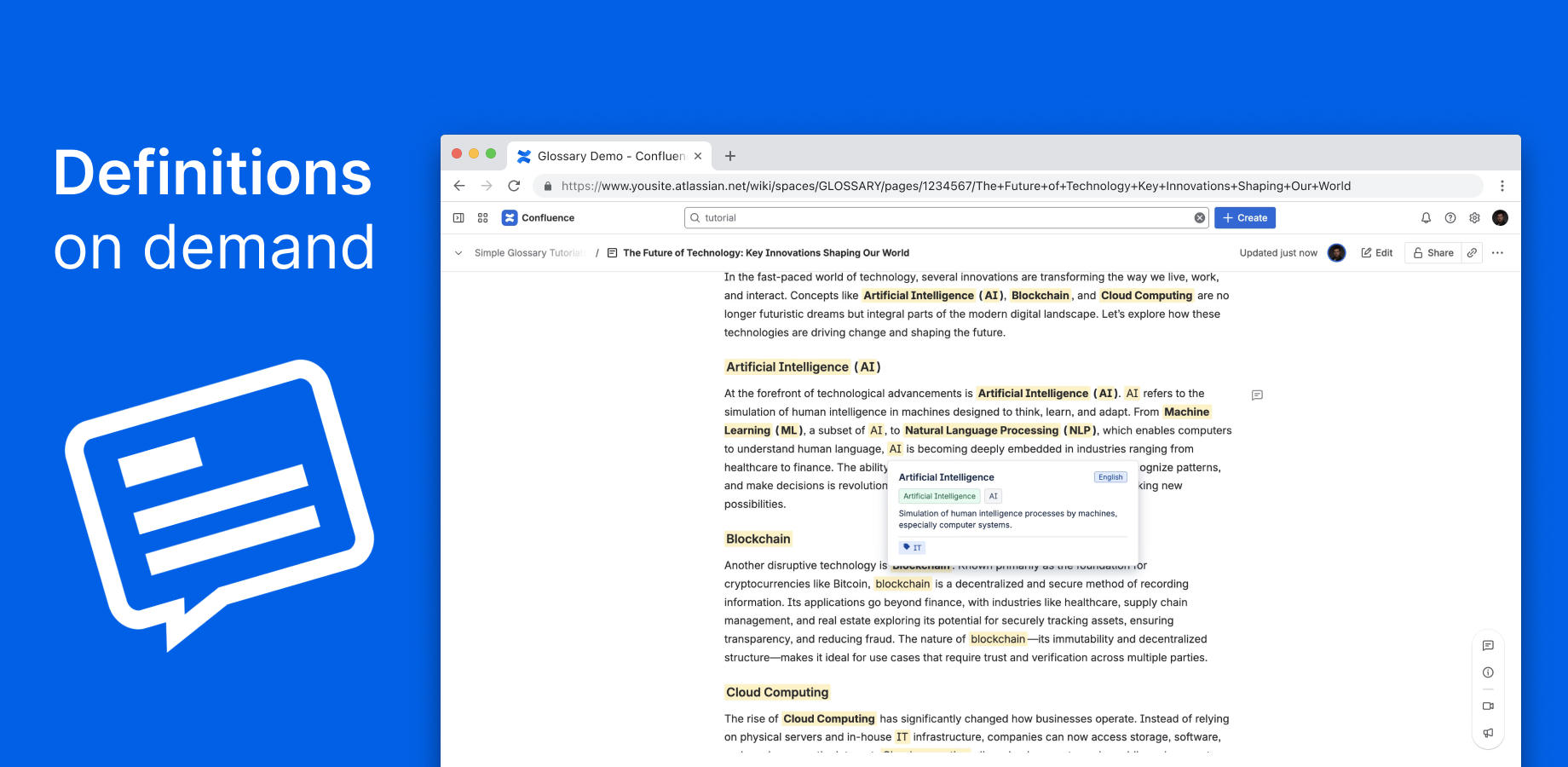 This glossary offers essential features without complexity, making it intuitive to use. Terms are stored securely within your Confluence instance, ensuring privacy and control.