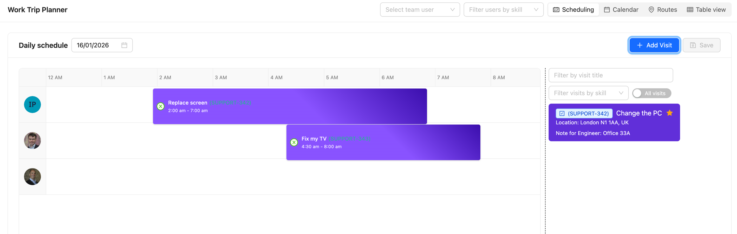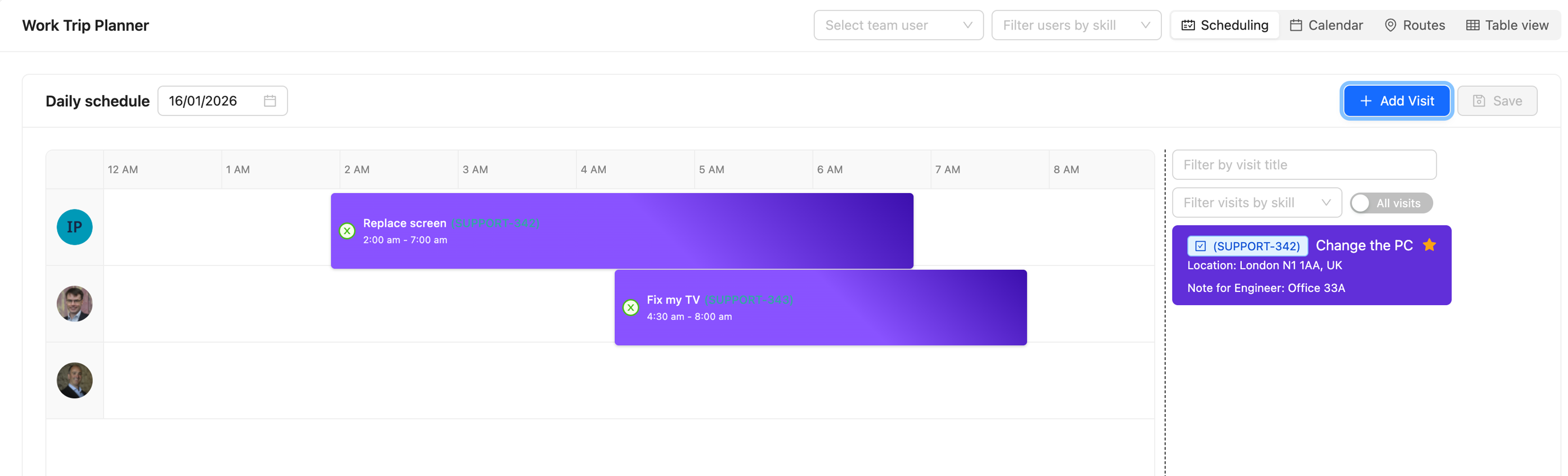 Create and manage engineer schedules with ease. Assign tasks efficiently, ensure optimal coverage, and adapt plans quickly to meet dynamic service demands.