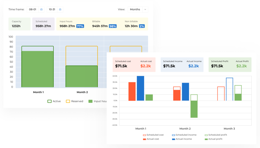 Compare planned profitability with actual performance to identify gaps and optimize people, projects and company performance.