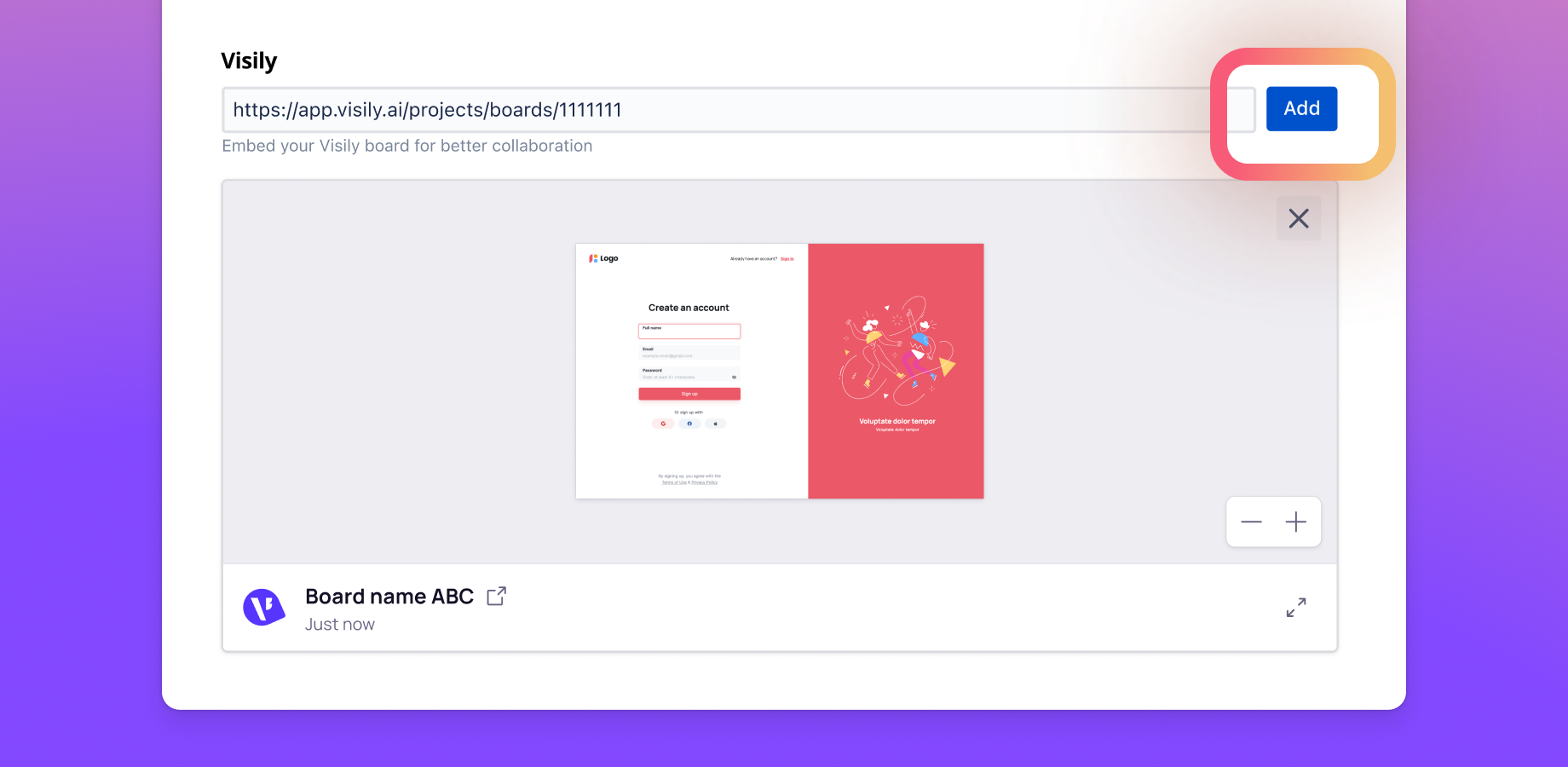 Easily embed Visily boards in Jira tickets to view and interact with your designs. Zoom in on specific elements, manage multiple links, and customize your workflow, all within the Jira interface.