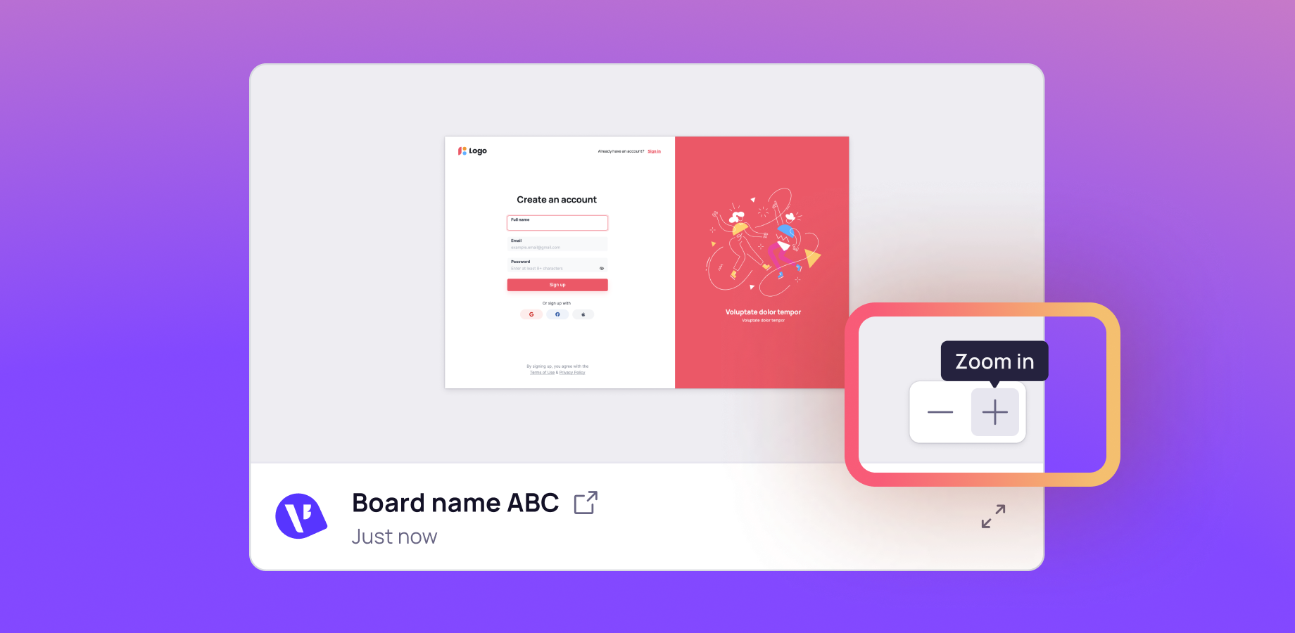 View Visily boards with interactive zoom directly in Jira and enjoy real-time updates. Focus on specific elements or explore the entire board in full-screen mode, enhancing collaboration and detailed design work.
