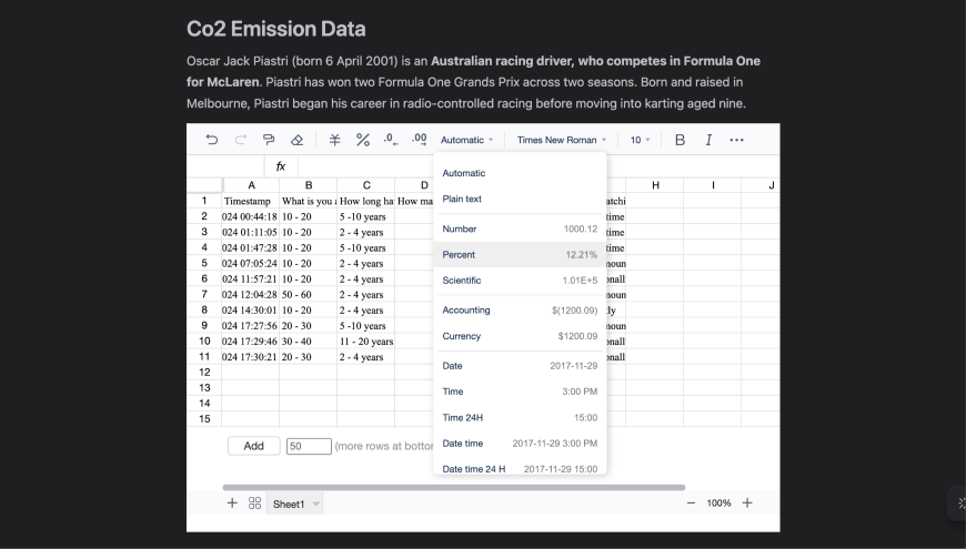 Create, edit, and format spreadsheets directly in Confluence with an intuitive, Google Sheets-like interface.