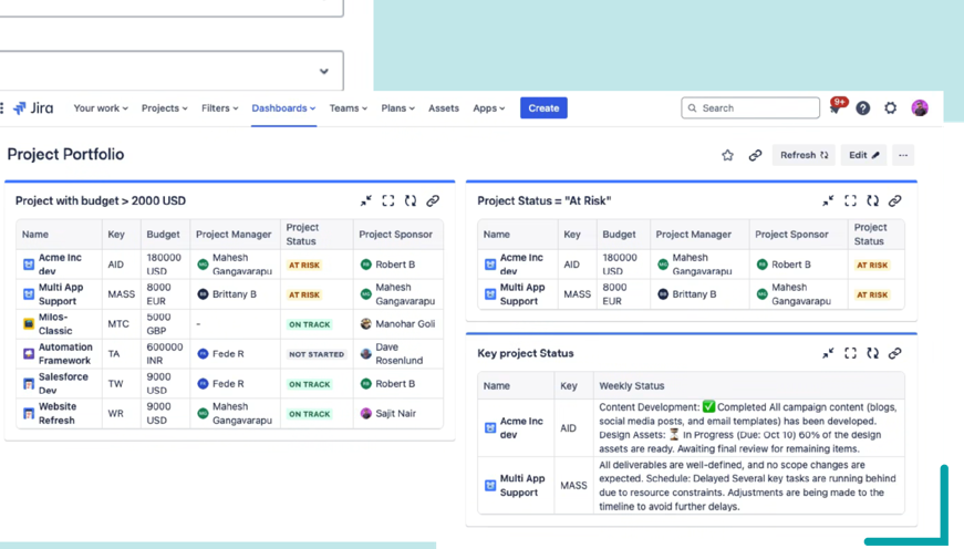 Key highlights of the appStructure your Jira projects and share portfolio-level insights — such as status, costs, timelines, and more — with ease