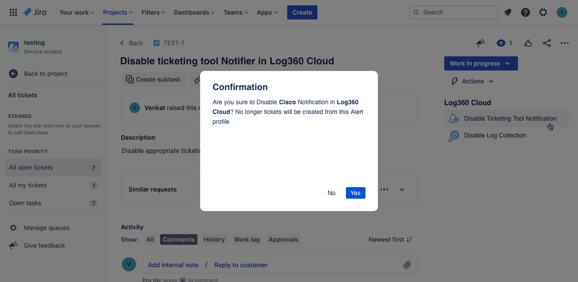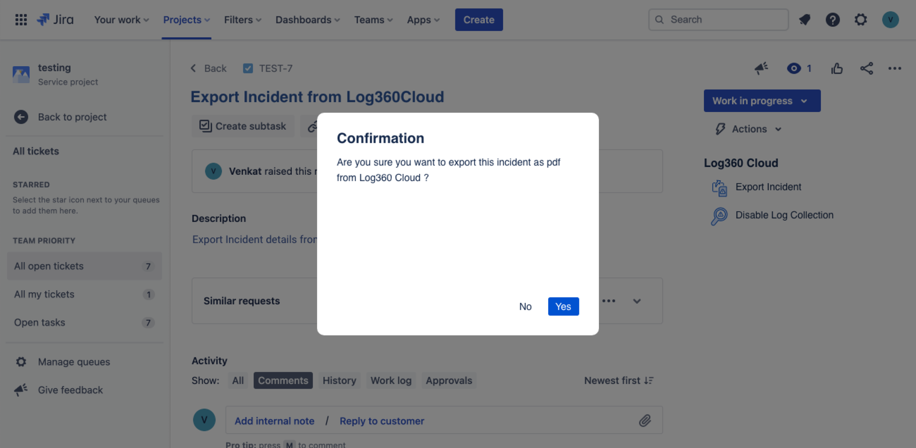 - Ensure two-way synchronization between incidents and tickets in Log360 Cloud and Jira for consistent updates across platforms.