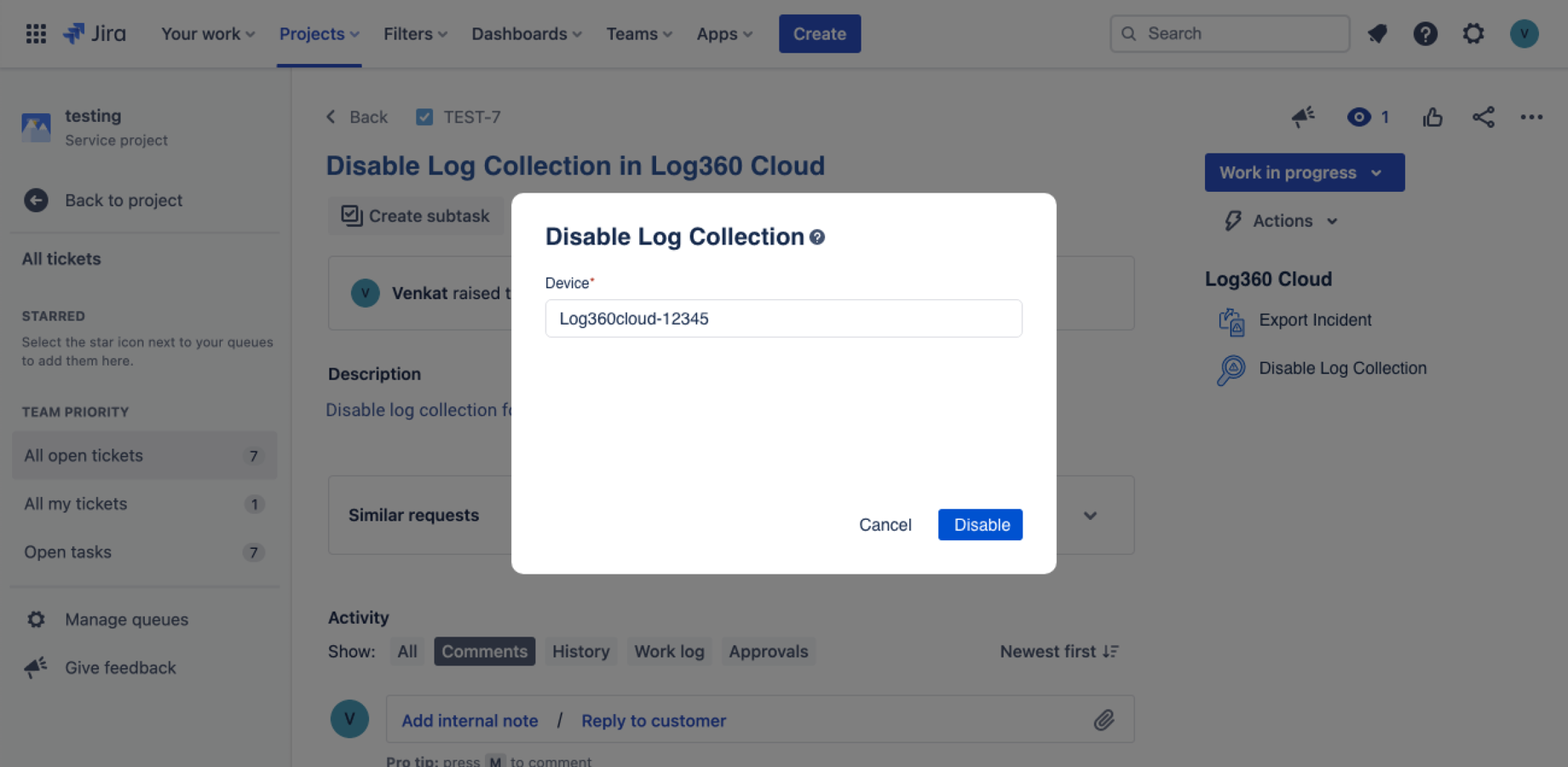 - Seamlessly manage and respond to incidents within Jira using Log360 Cloud.