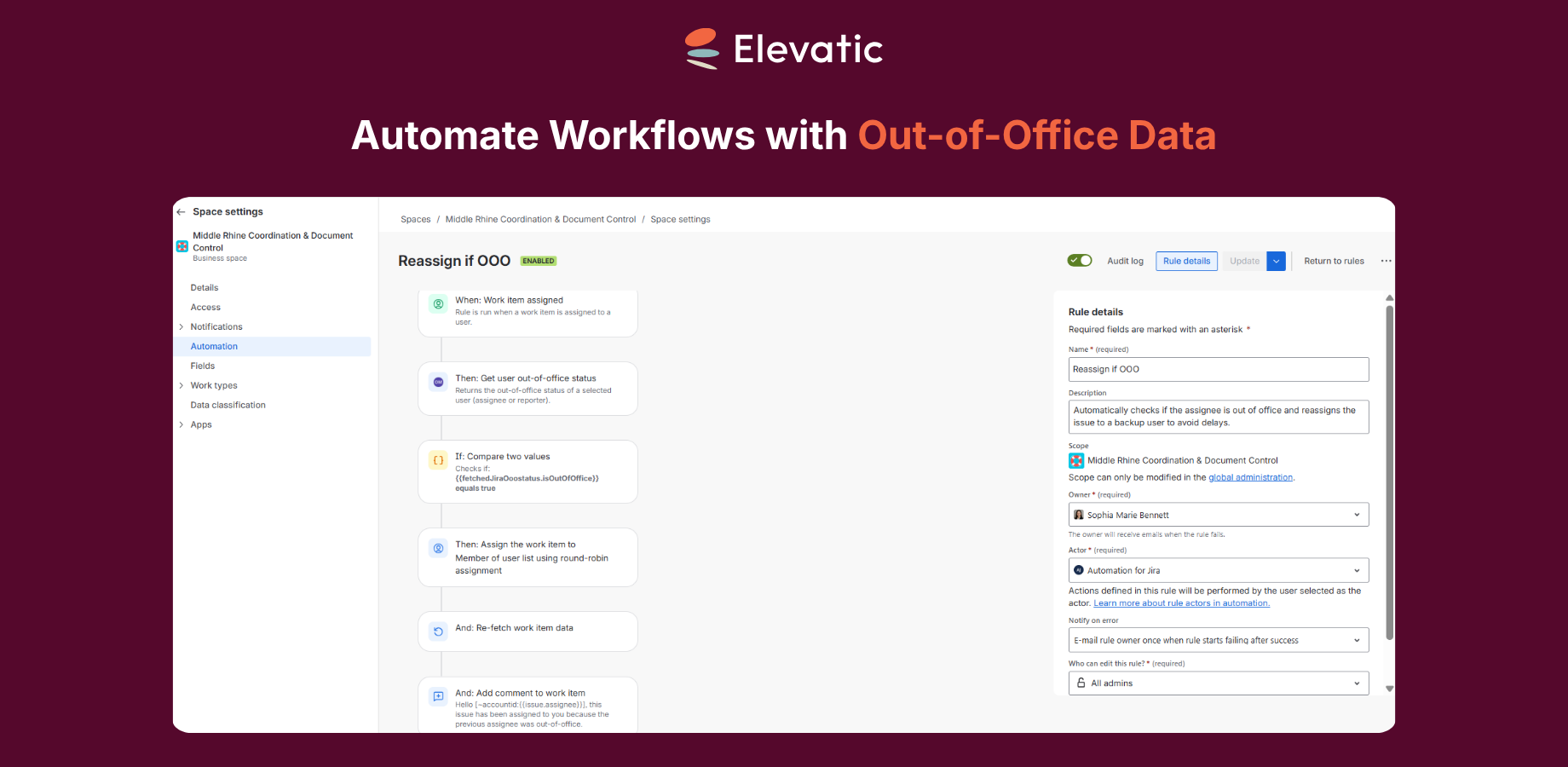 Use dedicated automation actions to handle team absences. Automatically reassign tasks and manage transitions during absences without manual configuration. Set it once and let Jira Automation handle the rest.