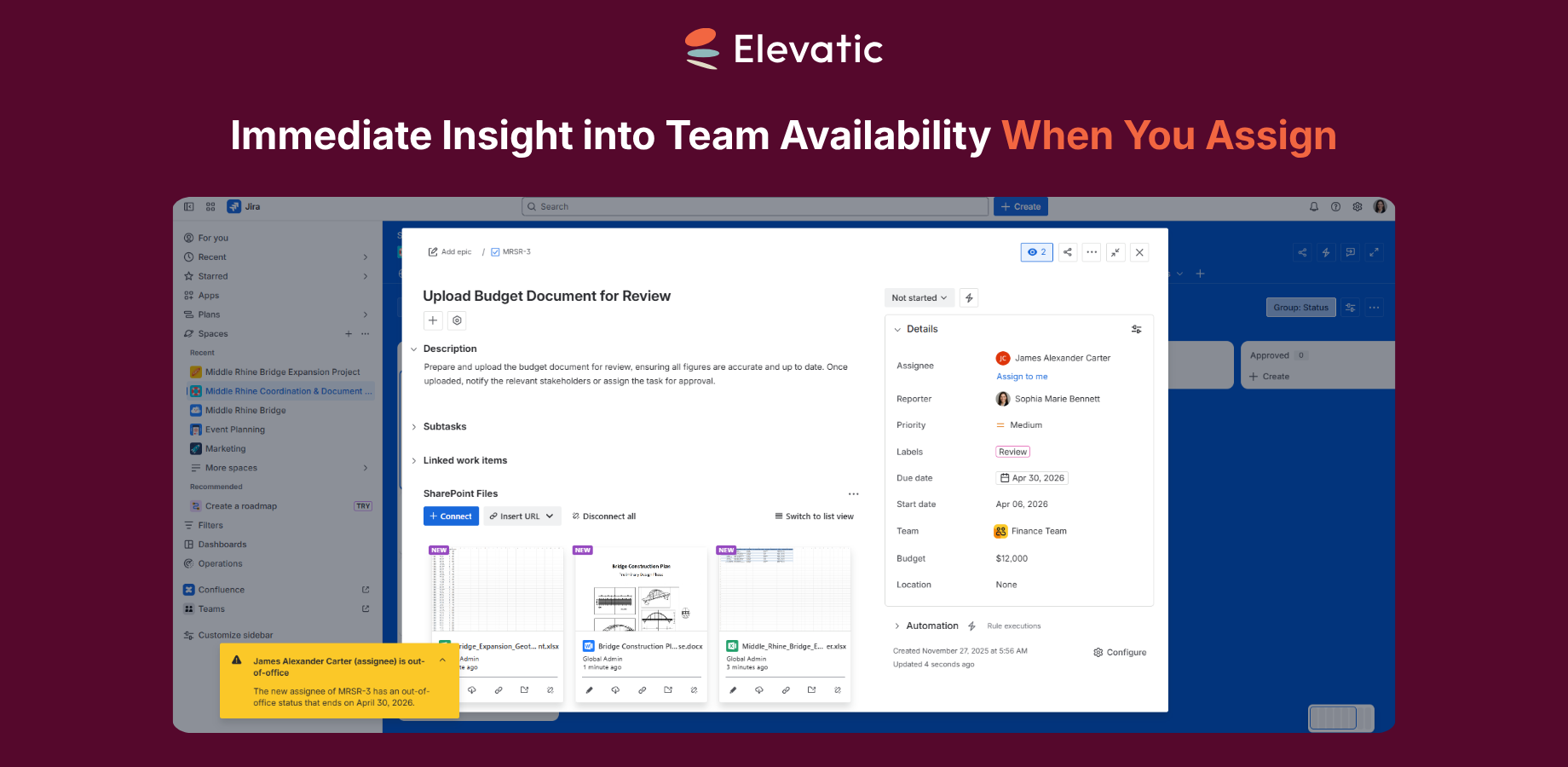 - No disruption to project timelines: By notifying users when a new assignee is out-of-office, the app simplifies absence management and helps prevent delays, ensuring projects stay on track.