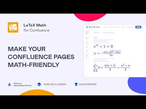 LaTeX Math for Confluence is a powerful and secure plugin for rendering formulas and equations using LaTeX math symbols directly in Confluence.