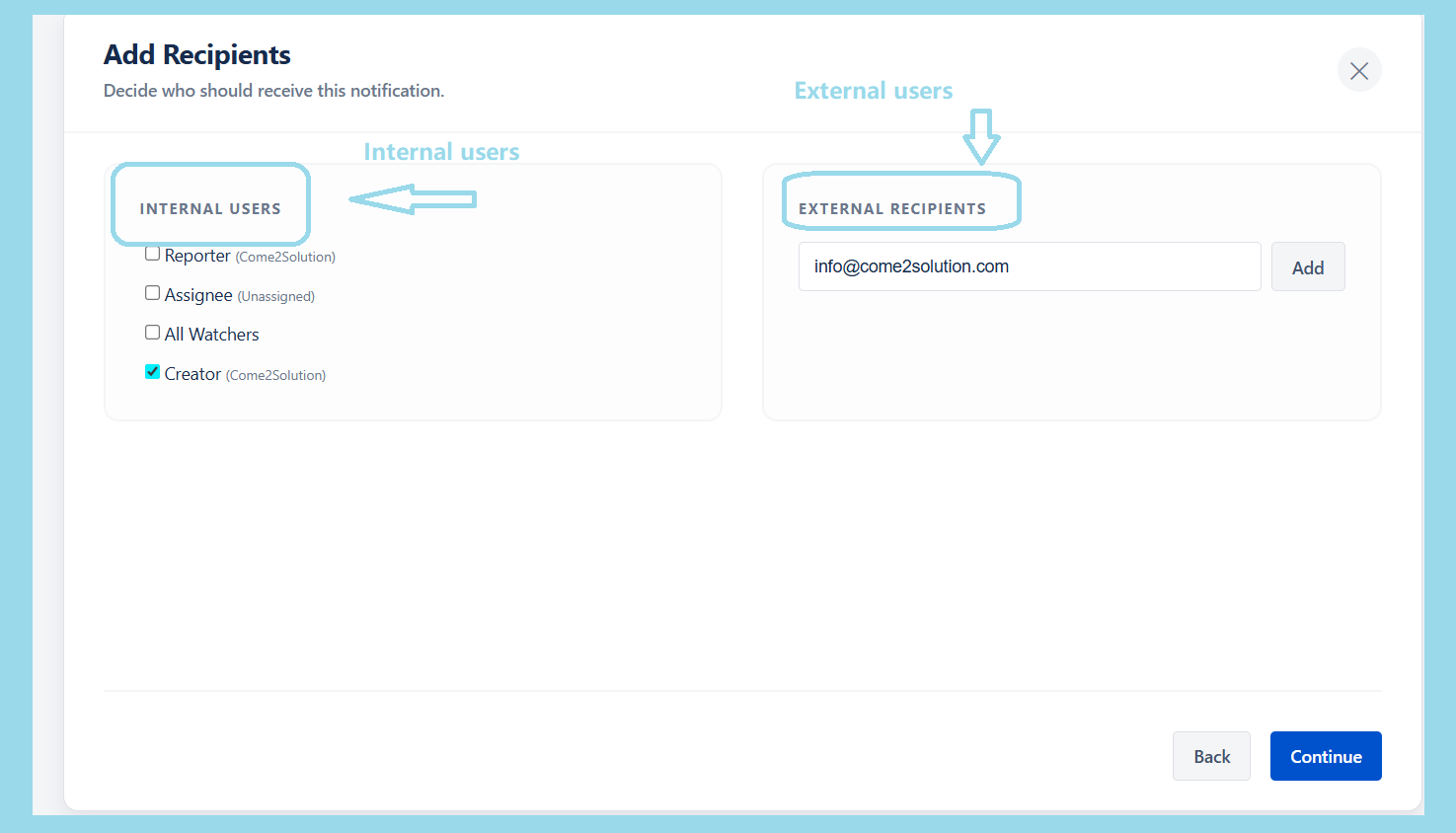 πŸ‘₯ Recipient Management: Send to Jira users (assignee, reporter, groups, roles)
