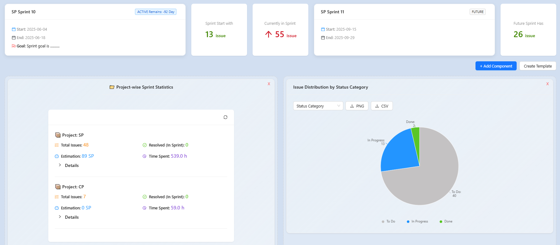 With built-in gadgets, you can monitor every aspect of your sprint process.