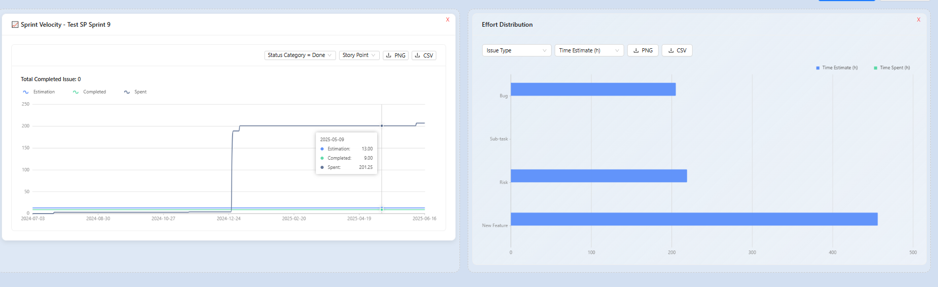 Track effort across multiple dimensions like task, assignee, label, or status.