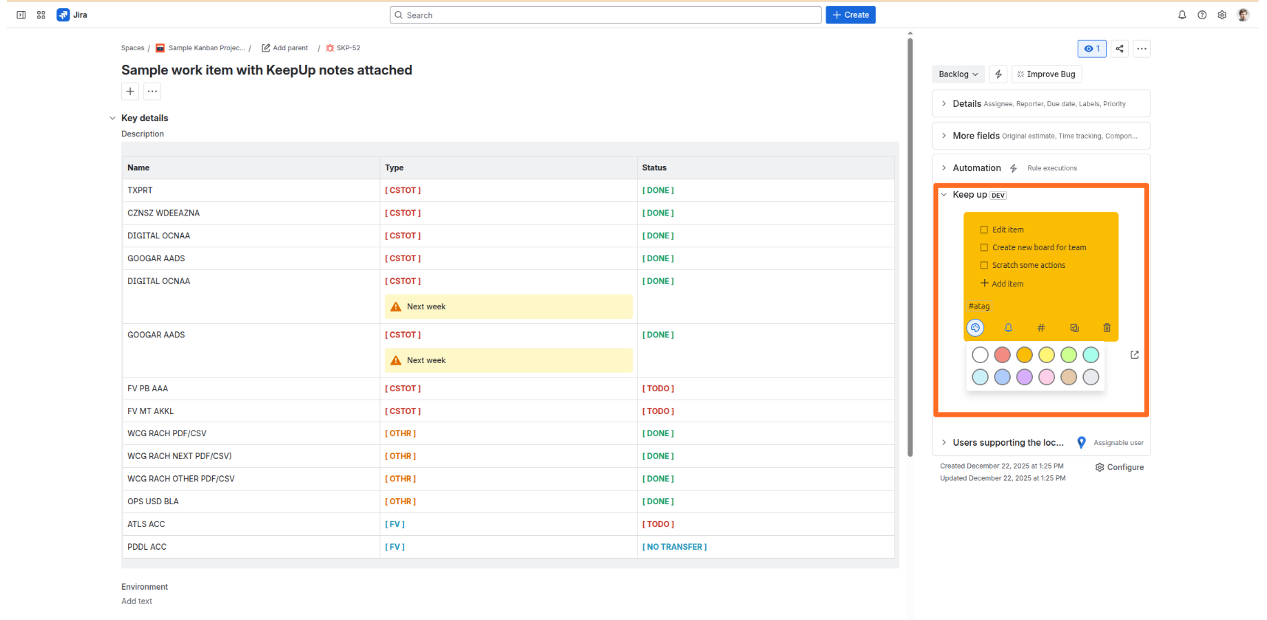 Keep Up personal notes, todos, reminders & board integrates with your Atlassian app