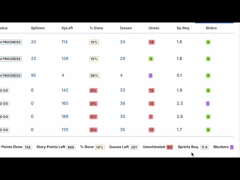 • Data-Driven Forecasts: Automatically calculates "Sprints Required" based on remaining Story Points.