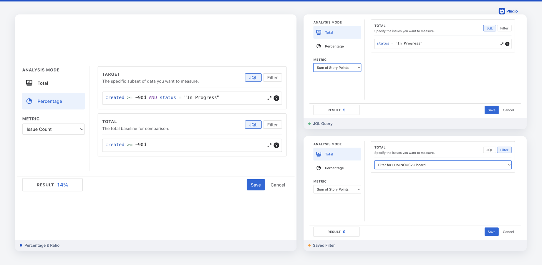 - JQL Powered: Drive your metrics with custom JQL queries or saved filters for total flexibility.