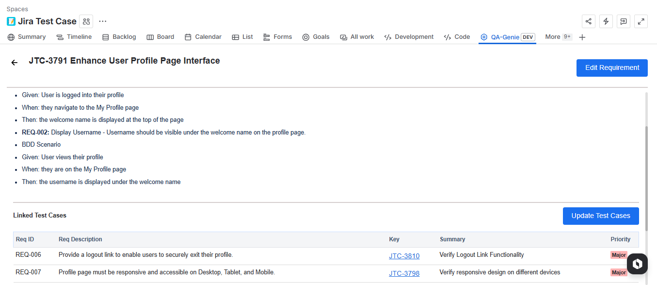 Detailed Test Case and Requirements Management