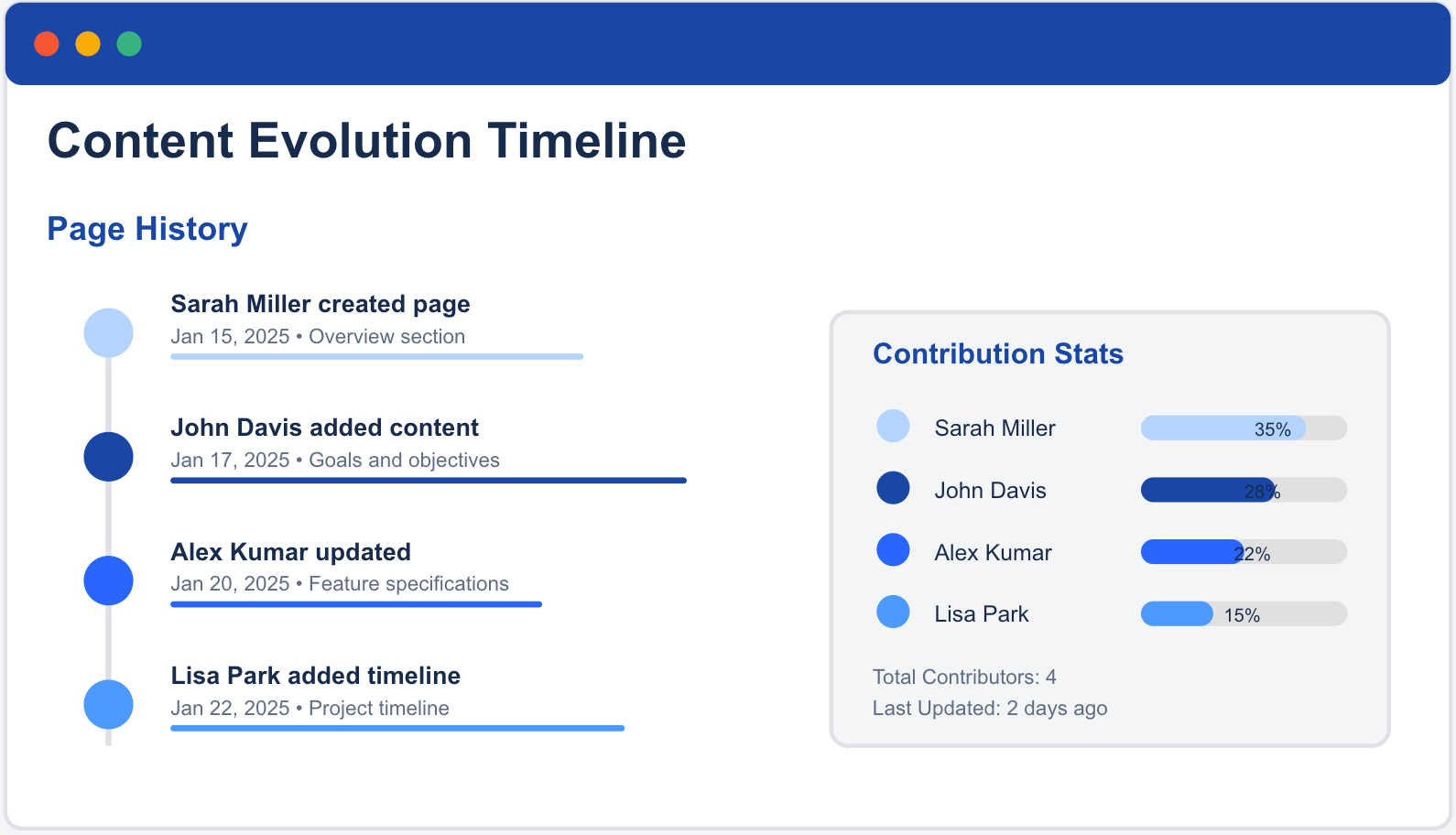 Key highlights of the appInstantly see who wrote what, when—without digging through page history
