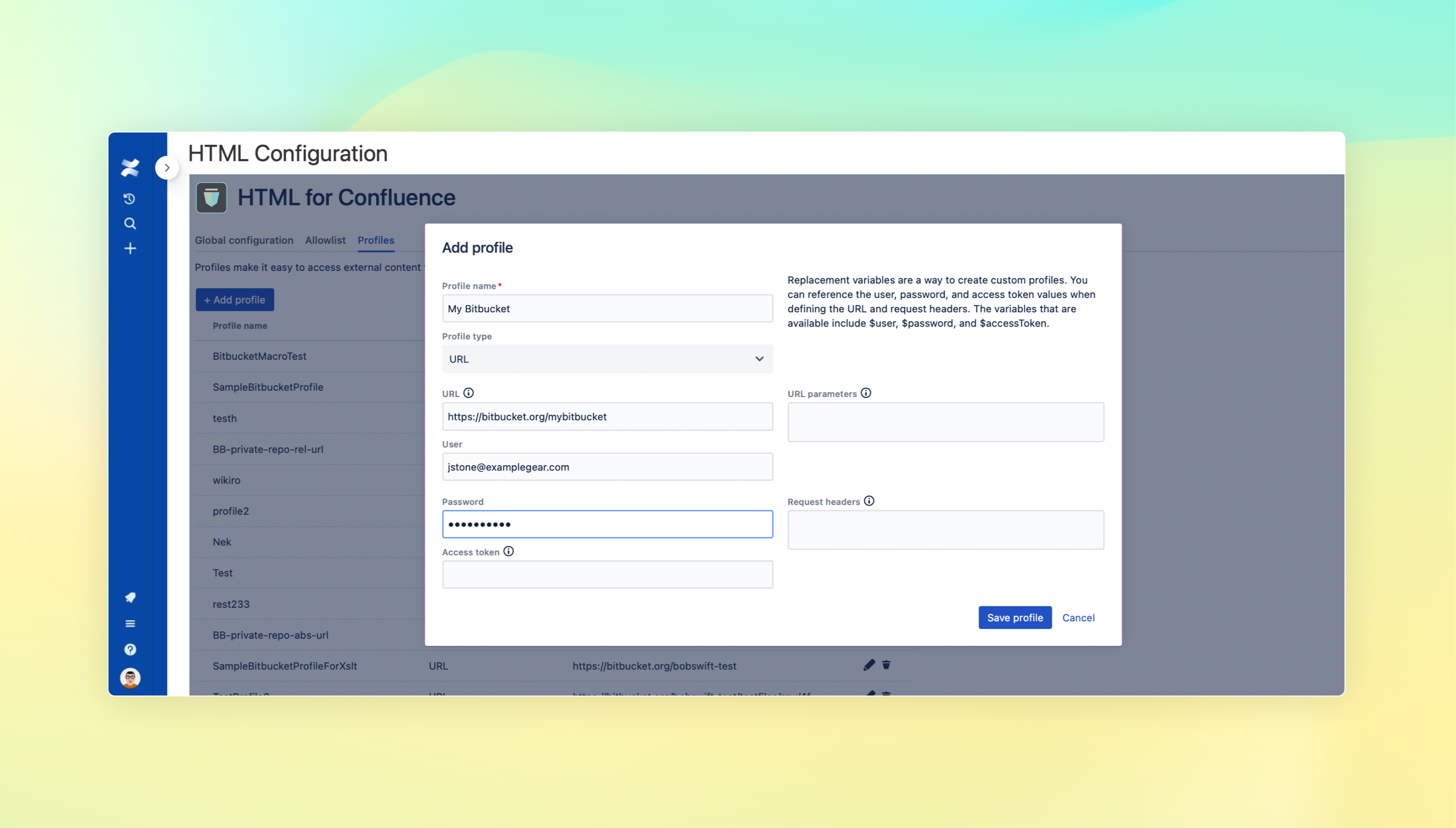 - admins can set up profiles so users can pull in HTML from external sites like Bitbucket, GitHub, GitLab, and more