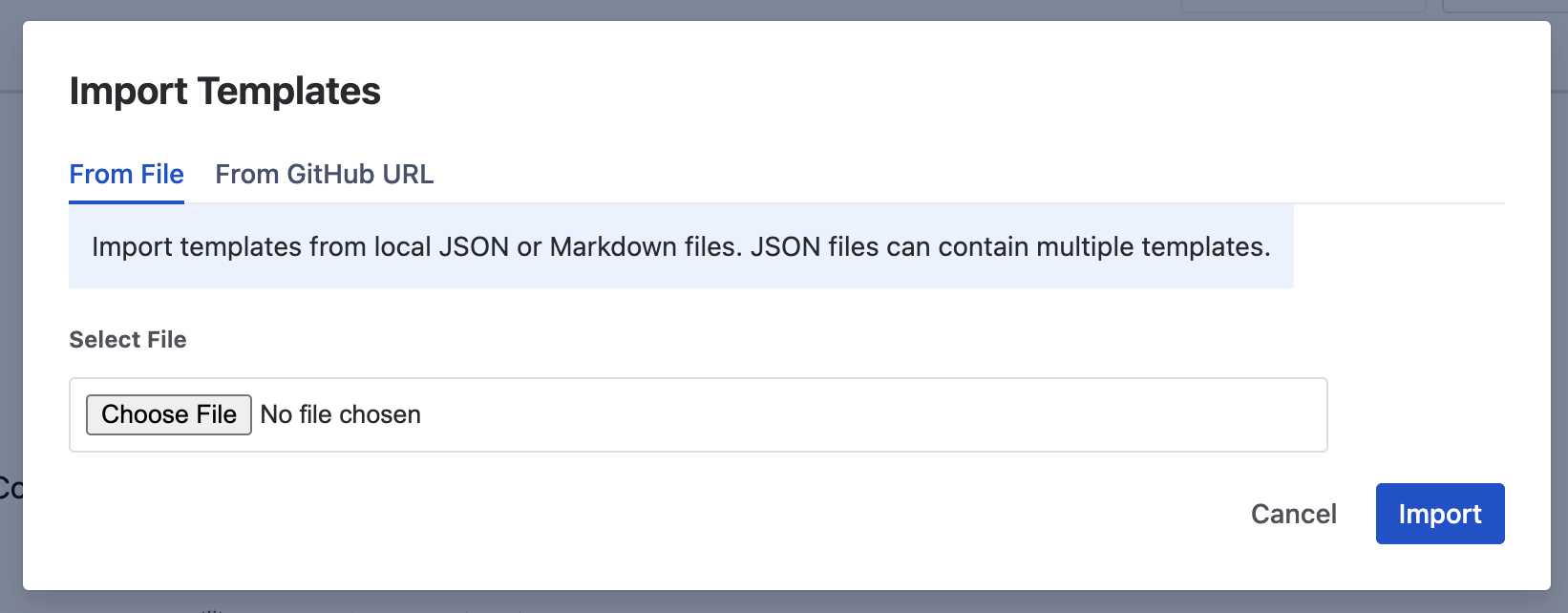 - Import templates from GitHub repositories, Gists, or Markdown files with YAML frontmatter support
