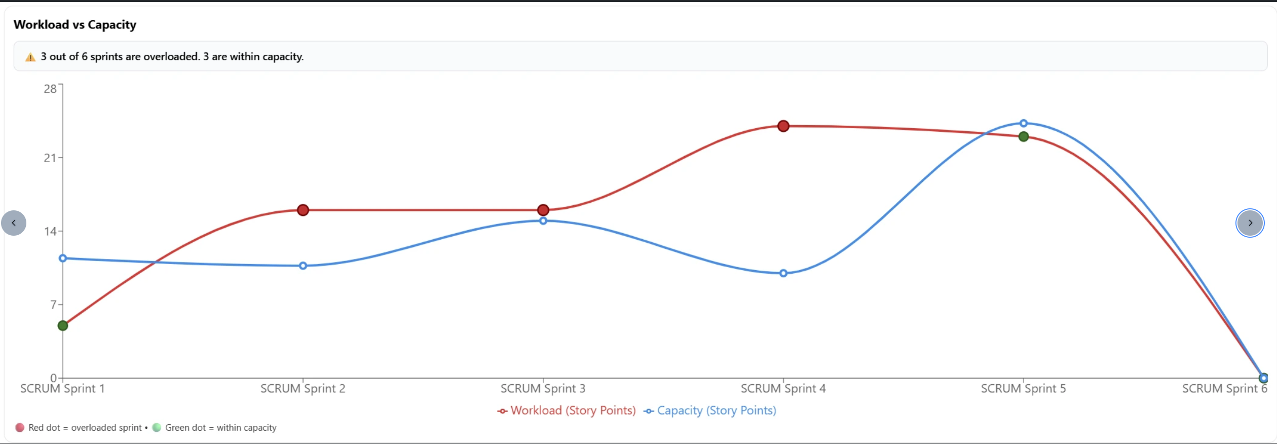 Visualize workload against capacity across sprints to instantly see where your team is overloaded.