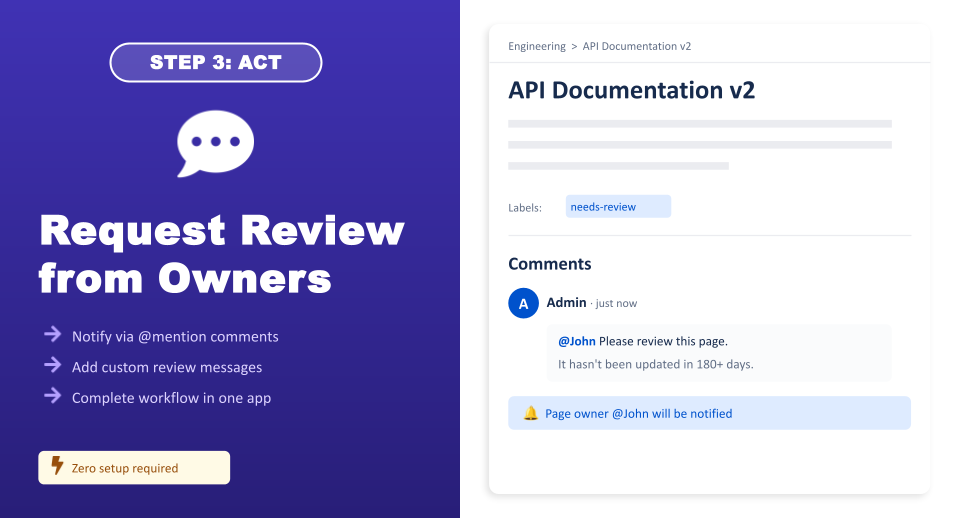 Tag multiple stale pages at once with custom labels. Integrate labeling with your existing Confluence review and archiving workflows to systematically manage documentation debt.