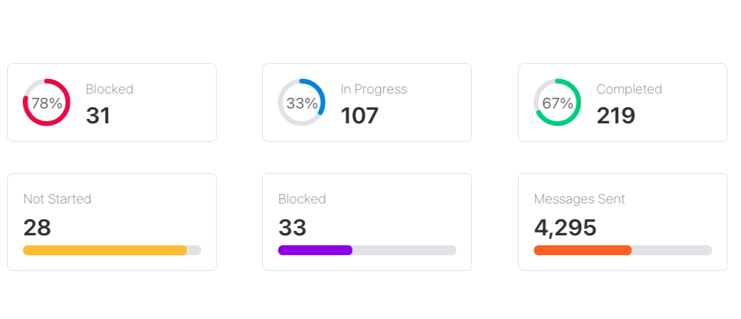 The new statistic macro shows exactly where you are at in a process. You can specify the label, value, percentage complete, and specify any color you want.