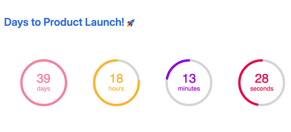 The countdown timer macro shows live dials, counting down to a specified date and time. This is great for showing how long until a corporate event or a product release. All colors are customizable.
