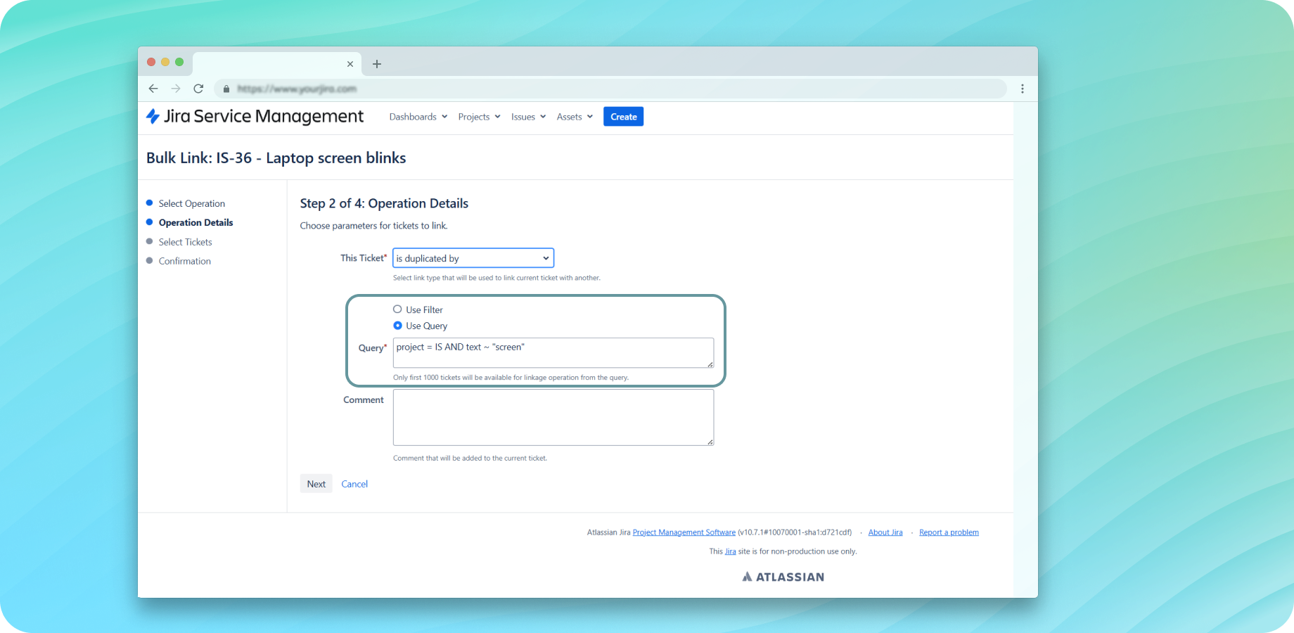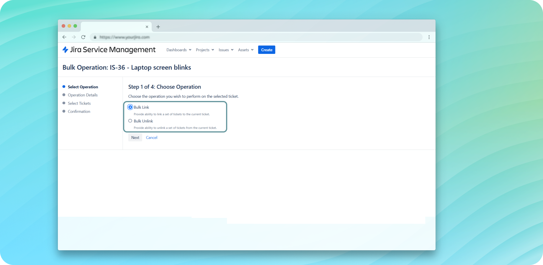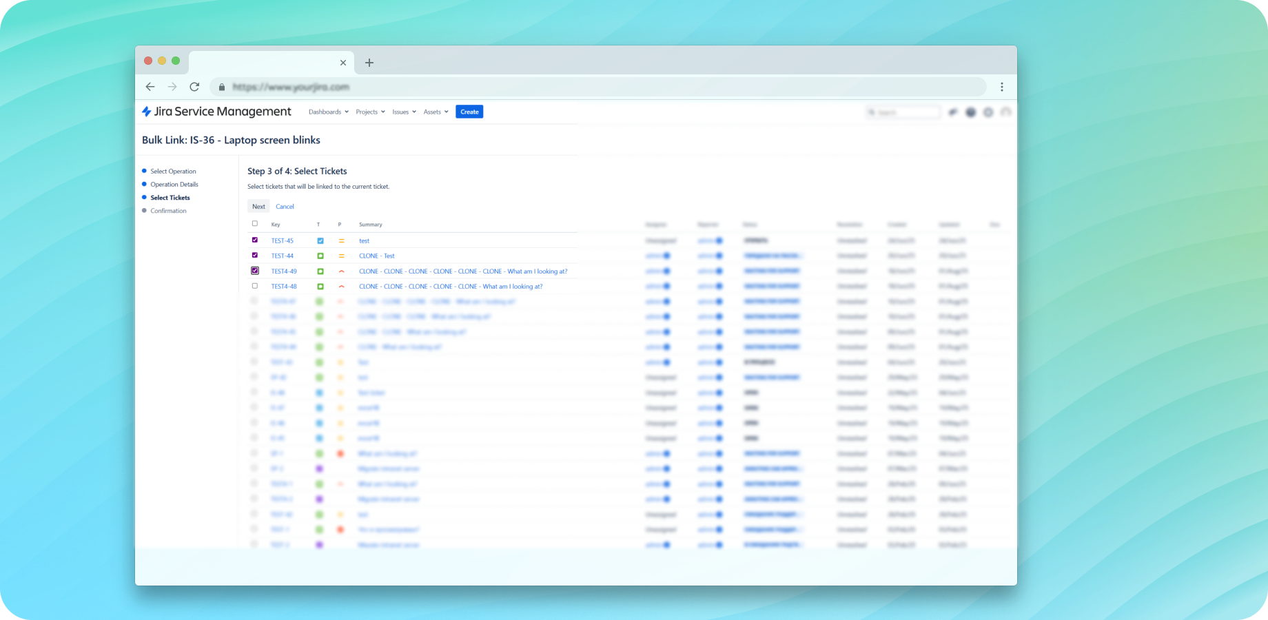Bulk Linkage makes it easy to connect related issues. Instead of opening each ticket manually, link them all at once using filters or JQL — perfect for establishing dependencies, relationships, or clean triage.