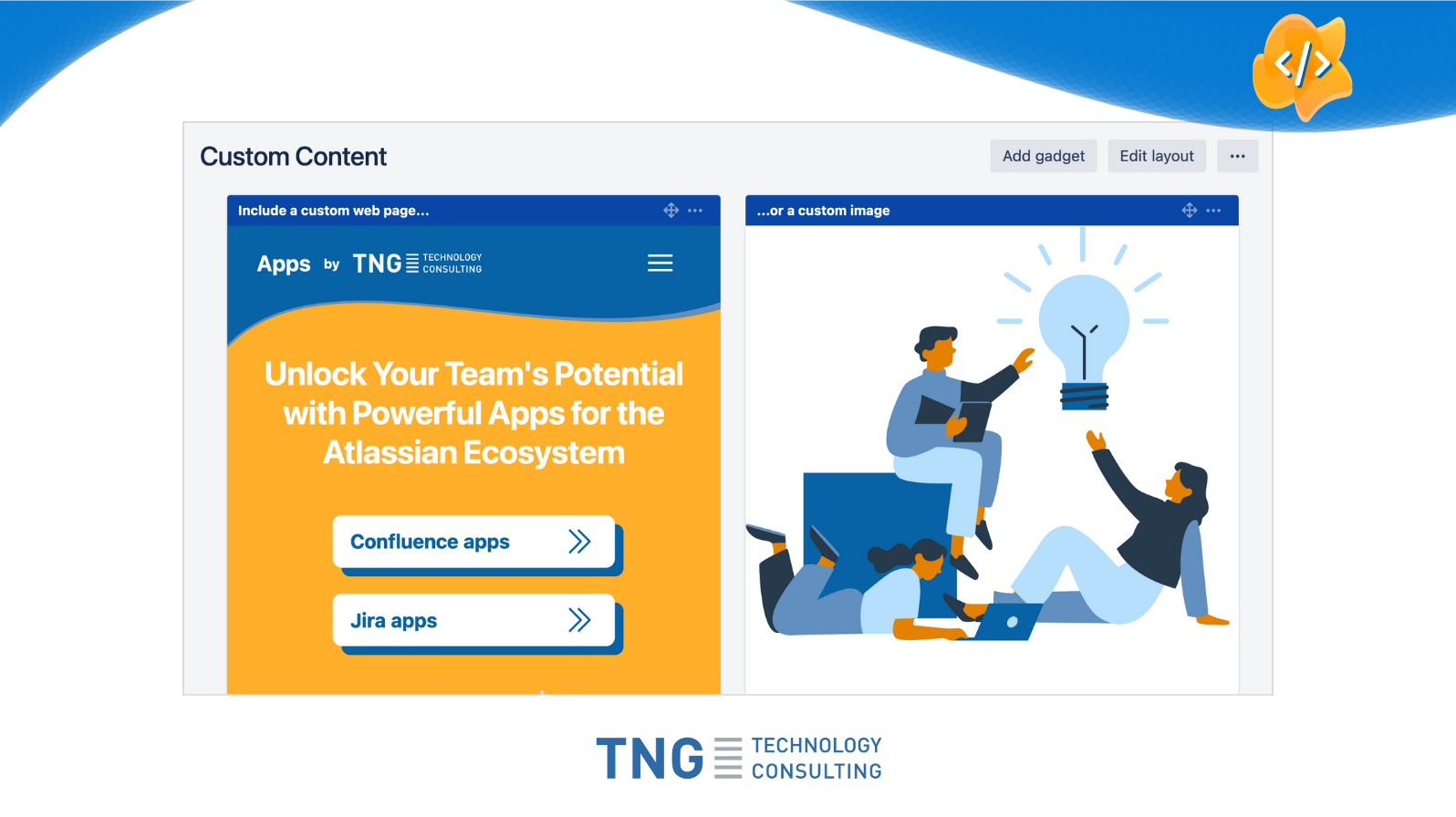 Key highlights of the appEmbed external services into gadgets. Seamlessly integrate Confluence pages, webpages, images, charts and more into your dashboard