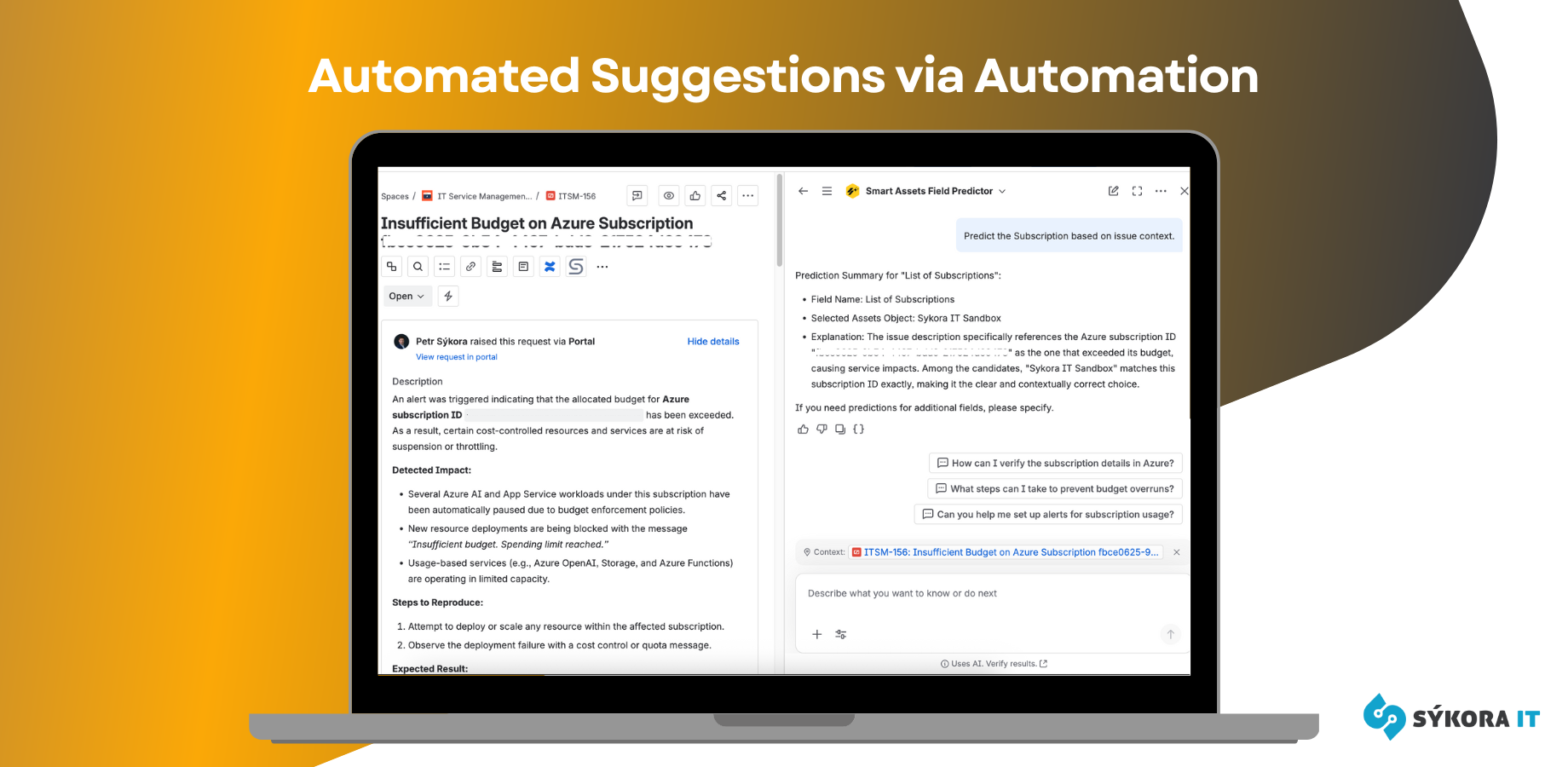 The agent helps predict Asset field values in real time and can also be triggered automatically when new issues are created or updated — making your workflow faster and more consistent.