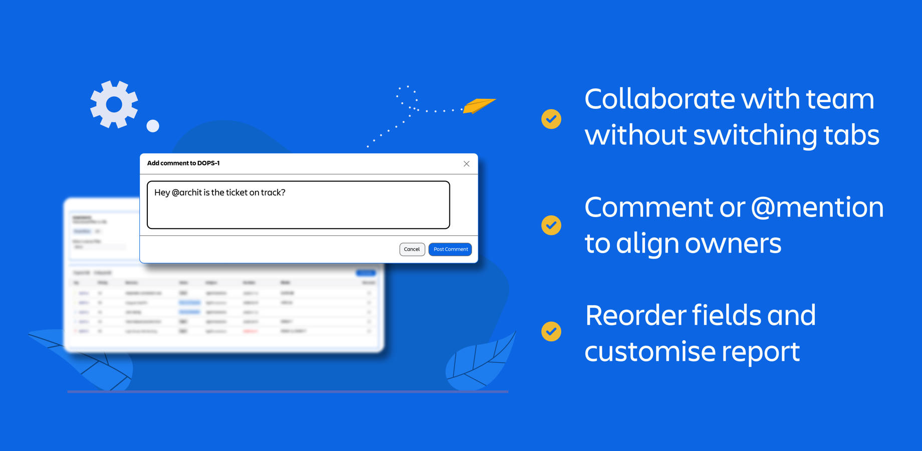 Stay in flow — comment, tag teammates, and update blockers right in the dependency table. Smart filters cut the noise so you focus only on what’s truly slowing the sprint down, no tab-hopping or context lost.
